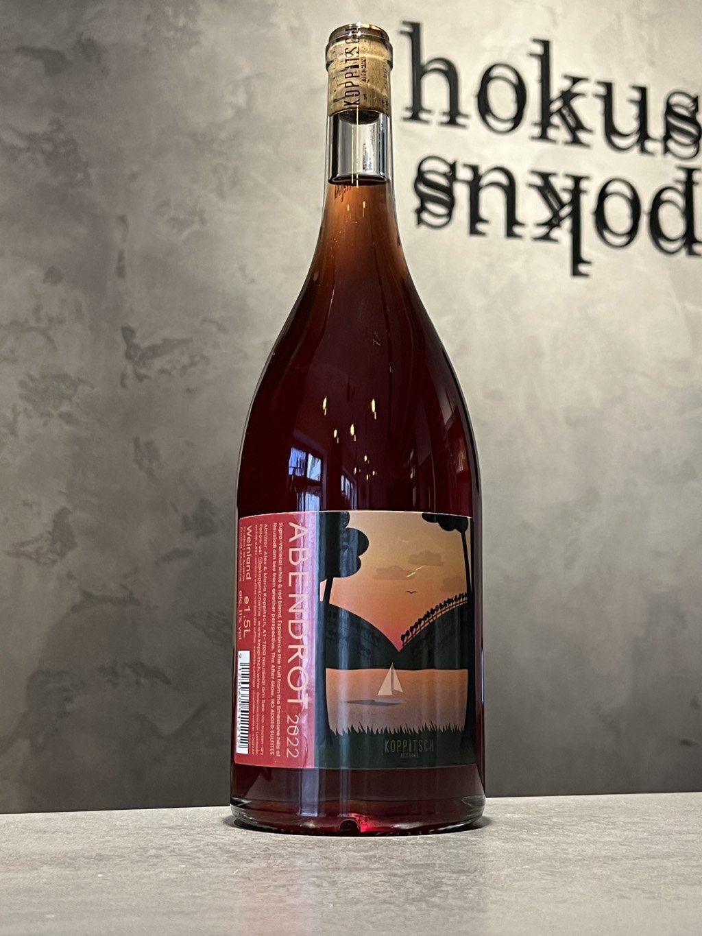 ABENDROT is a red wine from Burgenland. ABENDROT in German means sunset. All 6 grape varieties are grown on the limestone hills of the municipality. KOPPITSCH firmly believes that soil is more important than variety. As a result, one would assume that everything that grows together also goes perfectly together in wine. And this is ABENDROT. Cuvée Welschriesling (macerated), Rosenmuskateller (carbonic maceration), Chardonnay, Weissburgunder, Blaufränkisch and St. Laurent. It's all about curiosity, trying something new, expanding horizons, thinking outside the box. A mix of red and white that will support your palette and your brain. Absolutely nothing extra, nature itself. All this, an inch fresher in a magnum bottle!